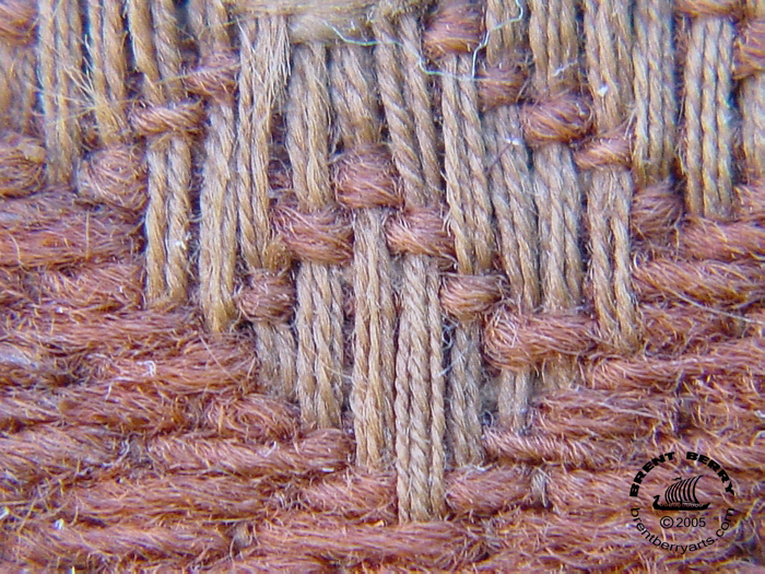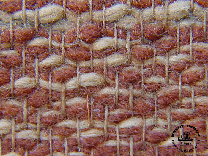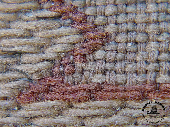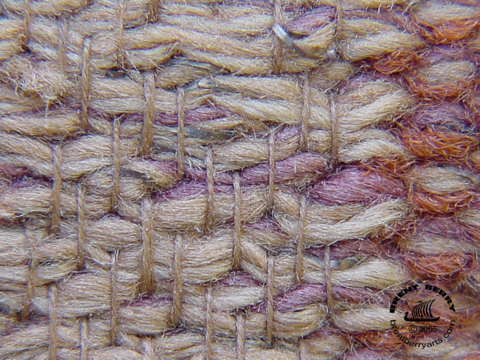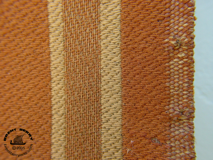 I believe it's wool and it has flat Gold thread or strands woven into the weave.